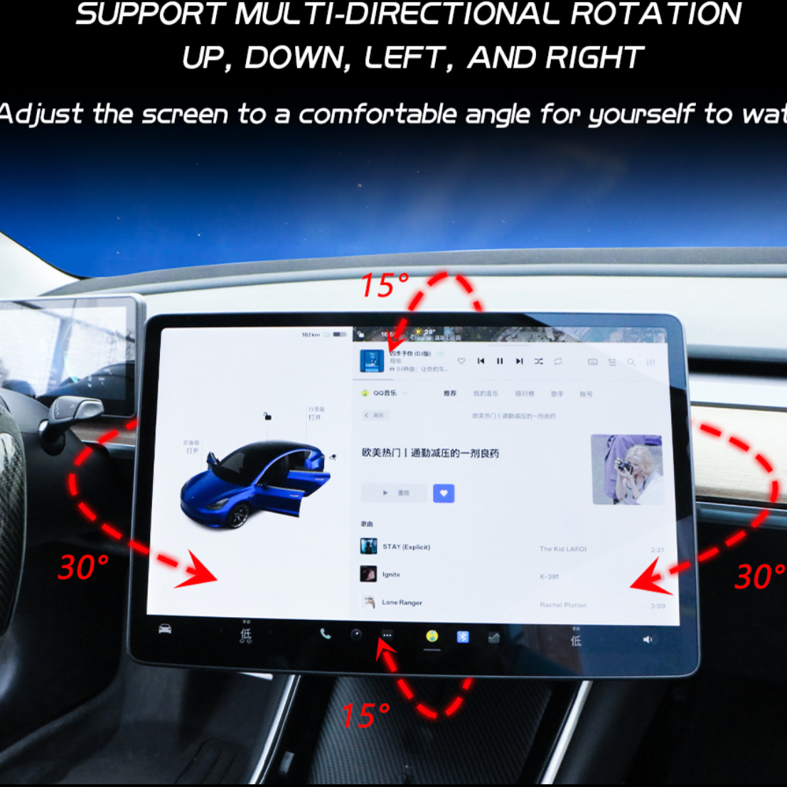 Tesla Model 3/Y Bildschirm Drehhalterung – 4-Wege Verstellbar (links/rechts, Hoch/runter), Aluminium, Für 2017-2023